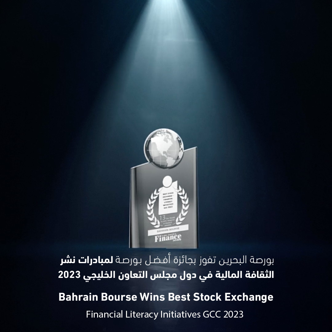 أعلنت بورصة البحرين، بورصة مرخصة من قبل مصرف البحرين المركزي، عن حصولها على جائزة "أفضل بورصة لمبادرات نشر الثقافة المالية في دول مجلس التعاون الخليجي" للعام 2023 ضمن جوائز Global Banking & Finance Review. ويأتي هذا التقدير رفيع المستوى ليؤكد التزام بورصة البحرين المتواصل بنشر الثقافة المالية من خلال برامجها المختلفة، ومشاركتها المستمرة في مبادرة "قرع الجرس بهدف نشر الثقافة المالية" التي أطلقها اتحاد البورصات العالمية بالإضافة إلى مشاركتها في الحملة الخليجية التوعوية (ملم) بالتعاون مع مصرف البحرين المركزي بهدف نشر الوعي حول مكافحة الاحتيال في أسواق المال. ​