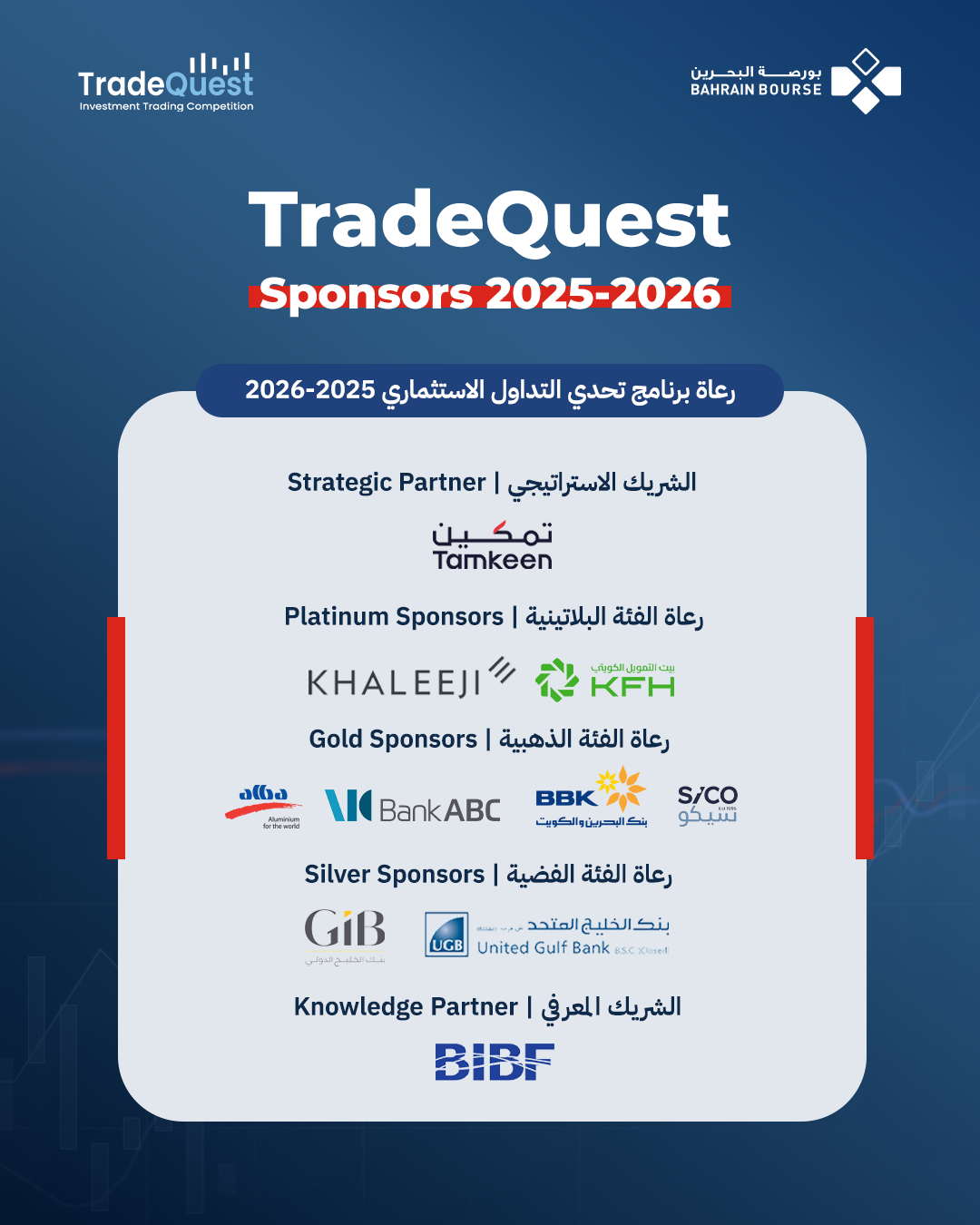 The concept of the program is to consider each university/school participating in the program as an investment team consisting of around 7/8 members who are given a virtual portfolio of BD500,000 and US$4 million to invest in companies listed at Bahrain Bourse and New York Stock Exchange (NYSE). Students will trade according to the procedures and systems implemented in both markets during specified trading sessions through an electronic trading platform on BHB’s website.